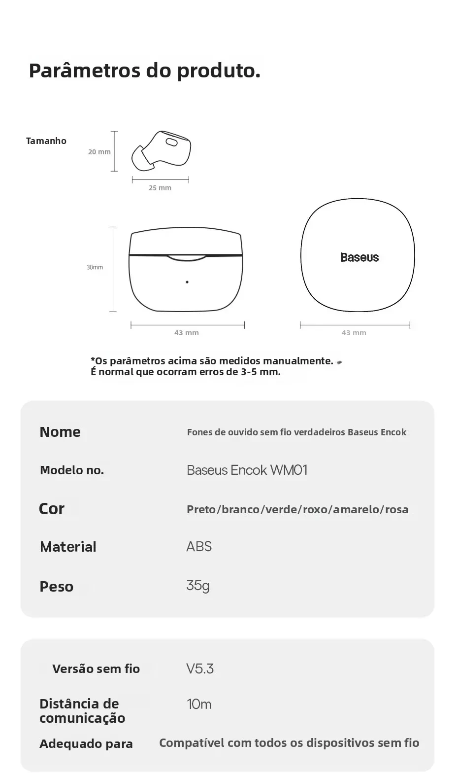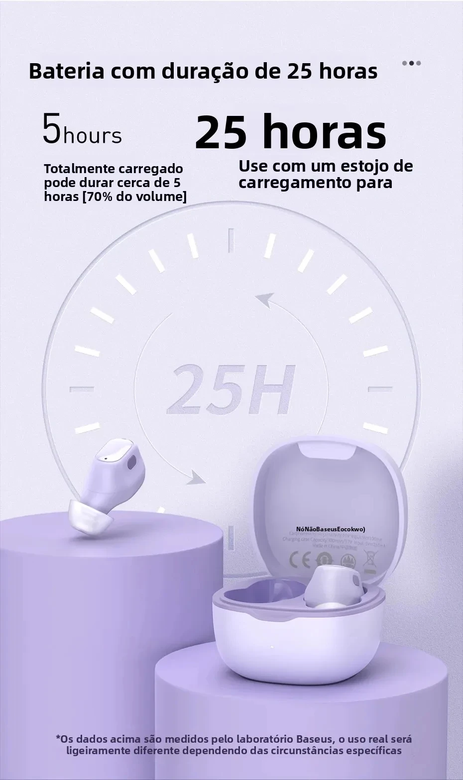🔋 Bateria de longa duração: 5 horas de música contínua e até 25 horas com o estojo de carregamento rápido.